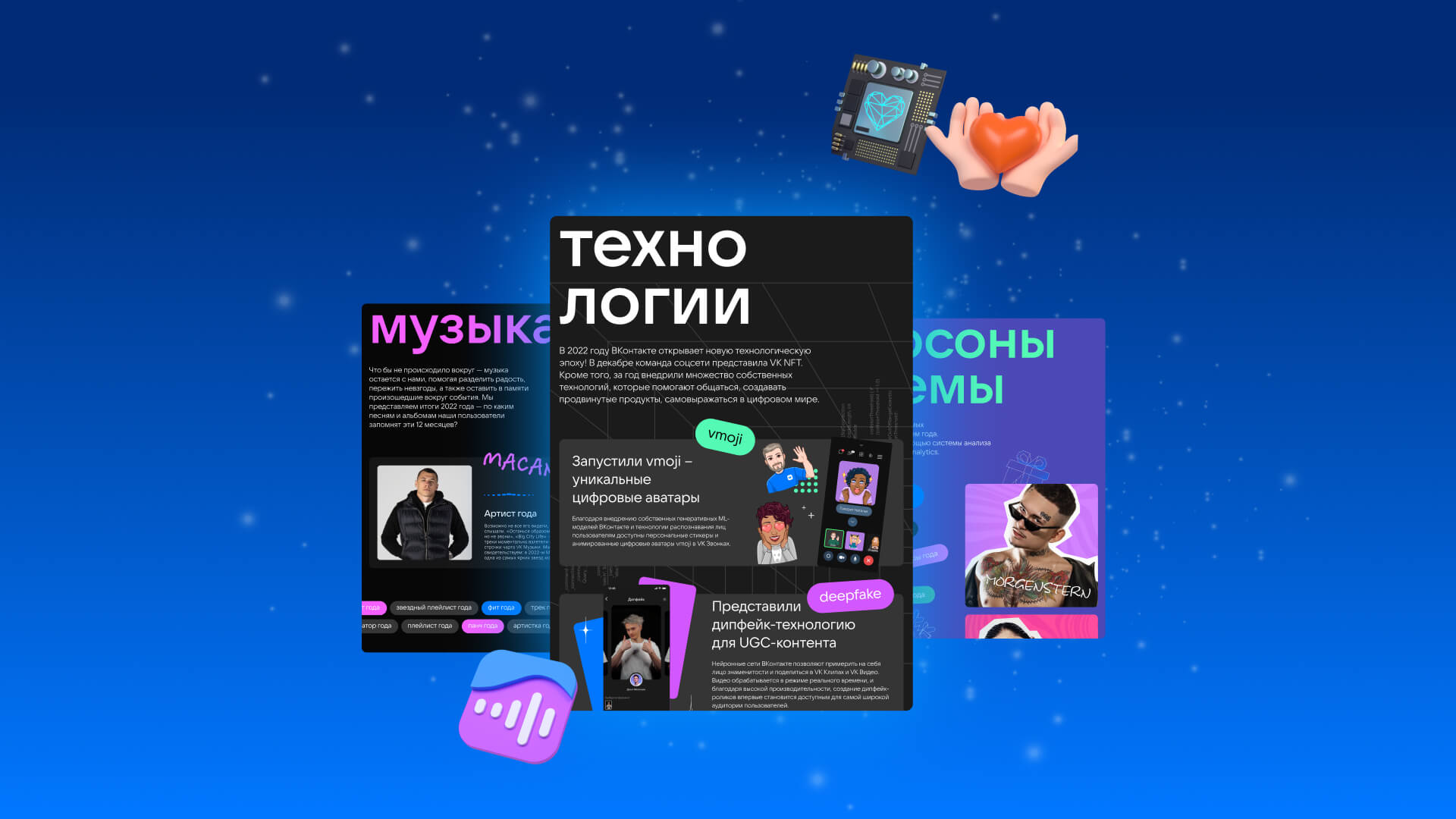 Итоги VK • промосайтСоздали концепцию, 3D- элементы, веб-дизайн и сверстали сайт с итогами года ВКонтактеweb